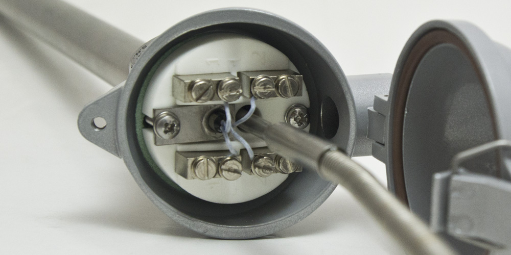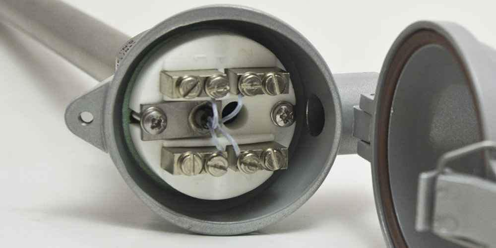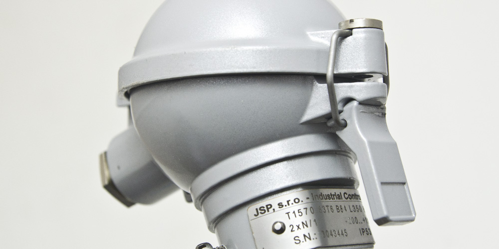 Detail na svorkovnici s otvorem pro kontrolní teploměr v otevřené hlavici