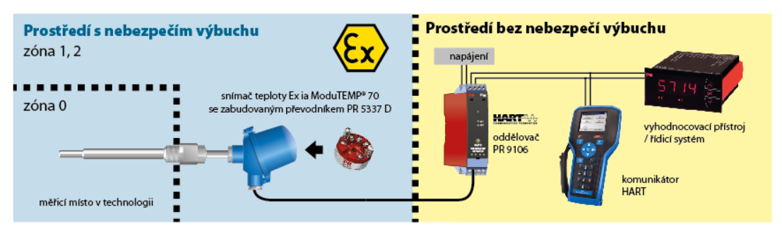 Měření teploty v prostředí SNV zóna 0 s přenosem signálu do zóny bez nebezpečí výbuchu při použití ochrany jiskrovou bezpečností s úrovní ia, skupina výbušnosti IIC