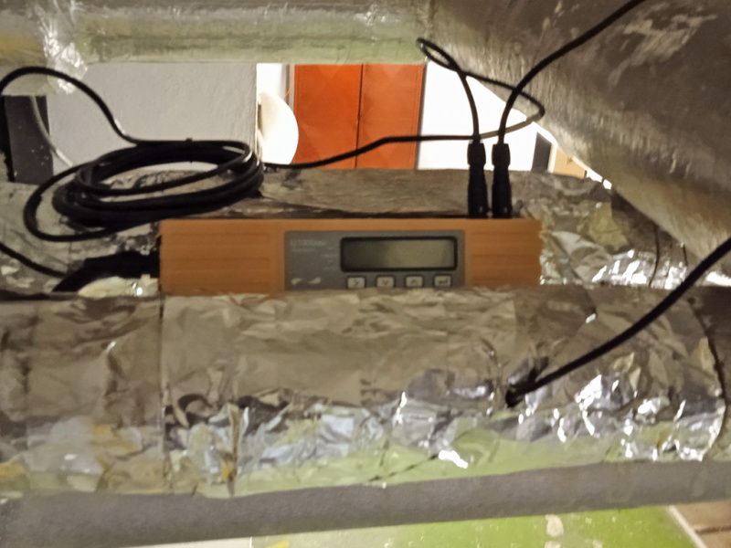 Ověřovací měření množství spotřebovaného tepla dodávaného a fakturovaného teplárnou, pomocí 3 ultrazvukových příložných měřičů typu U1000, instalovaných bez zásahu do potrubí, bez přerušení provozu.