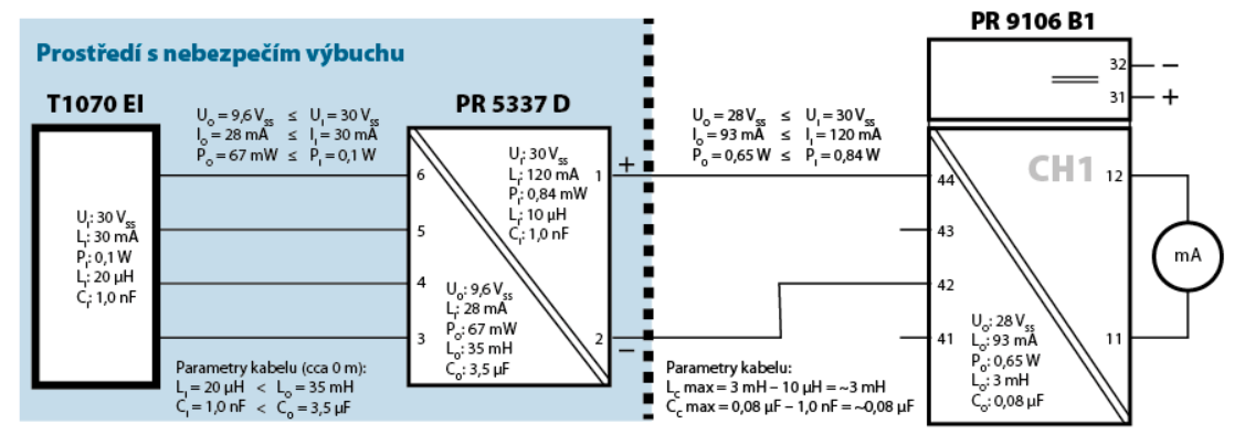 - Provedení kontroly napětí, proudu a výkonu přístrojů dle pravidla, že mezní výstupní parametry jednoho zařízení nesmí být větší než mezní vstupní parametry druhého zařízení (UO ≤ UI, IO ≤ II, PO ≤ PI).