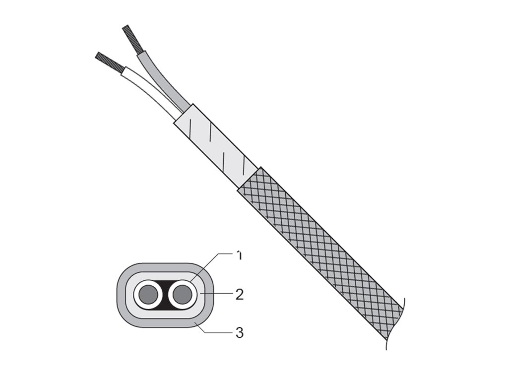 Vlastnosti produktu Prodlužovací a kompenzační vedení s izolací silikonový kaučuk / skelné vlákno a opletením ocelovým drátem