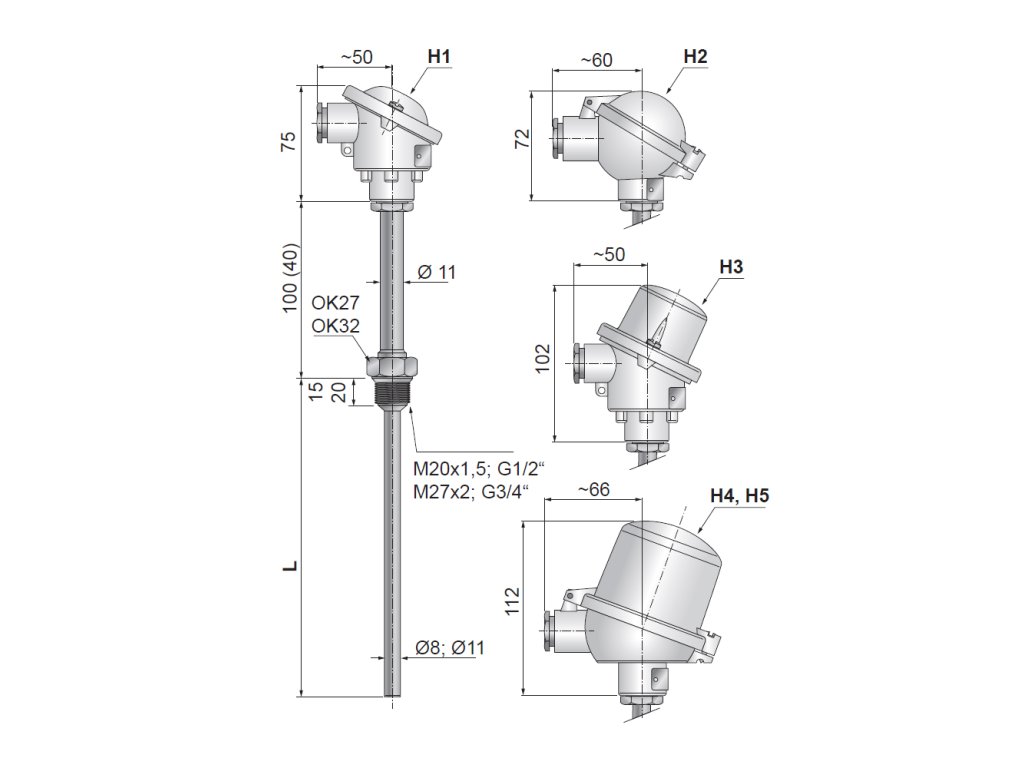 Vlastnosti produktu T1025 Odporové snímače teploty s jímkou