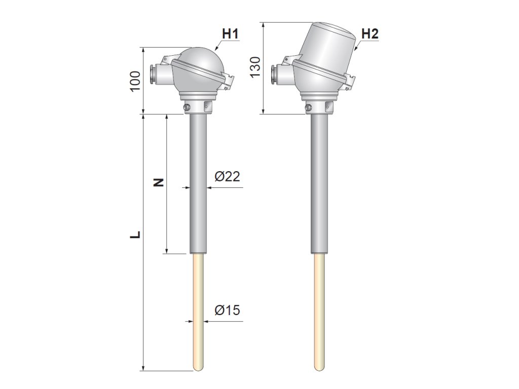 Vlastnosti produktu T1580 C15 Termoelektrické snímače teploty s keramickou ochrannou trubkou CeraTEMP® 80
