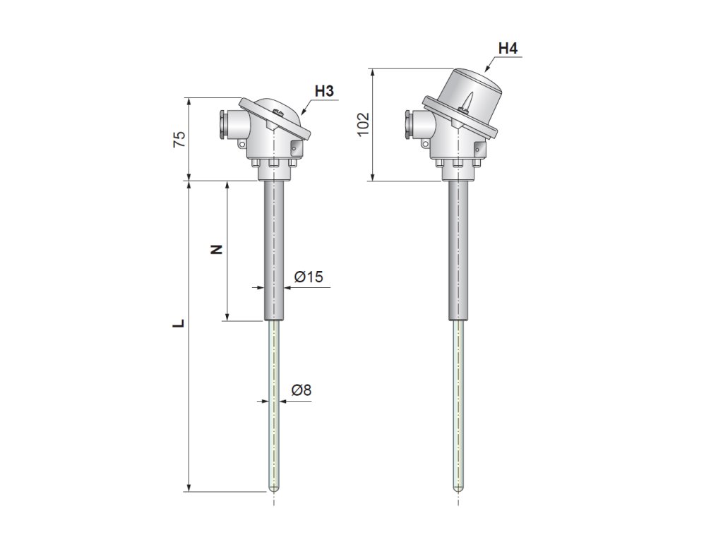 - Možnost montáže převodníku s výstupem 4 až 20 mA, HART, Profibus, Fieldbus do hlavice, včetně provedení s galvanickým oddělením a jiskrově bezpečným provedením.