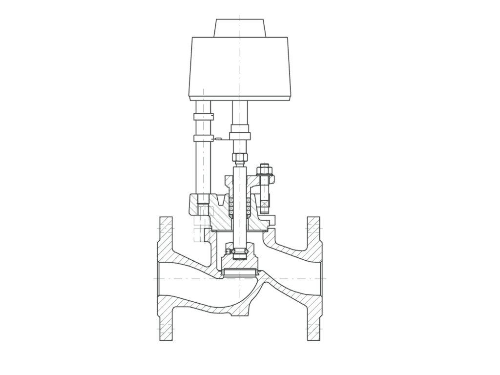 - Provedení přímé, přírubové, se stoupajícím vřetenem, s elektrickým pohonem.